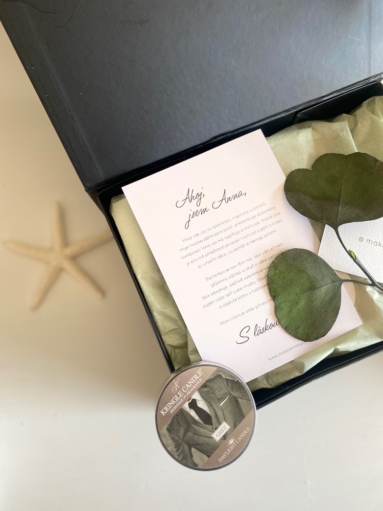 Každý box vzniká až ve chvíli, kdy si ho objednáte. Nejde o předem připravený produkt ze skladu, ale o jedinečný balíček sestavený přímo pro vás.