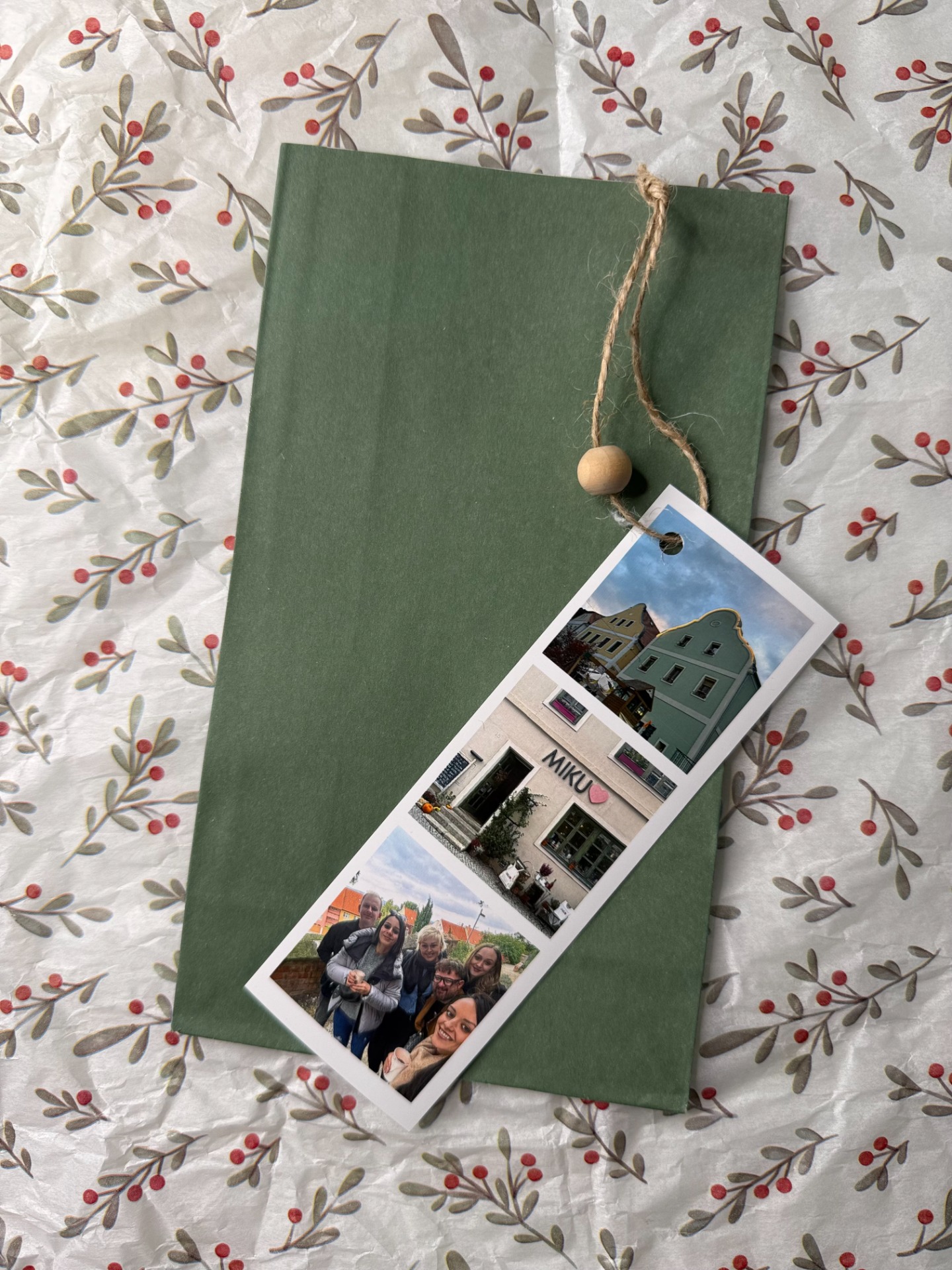 Po potvrzení objednávky mi můžete zaslat na e-mail jednu nebo i více fotografií, které chcete mít součástí balíčku. Buď zašlete jednu hlavní fotografii, nebo z více snímků vytvořím záložku do knížky, čímž udělám zážitek z rozbalování ještě osobnější a jedinečný.