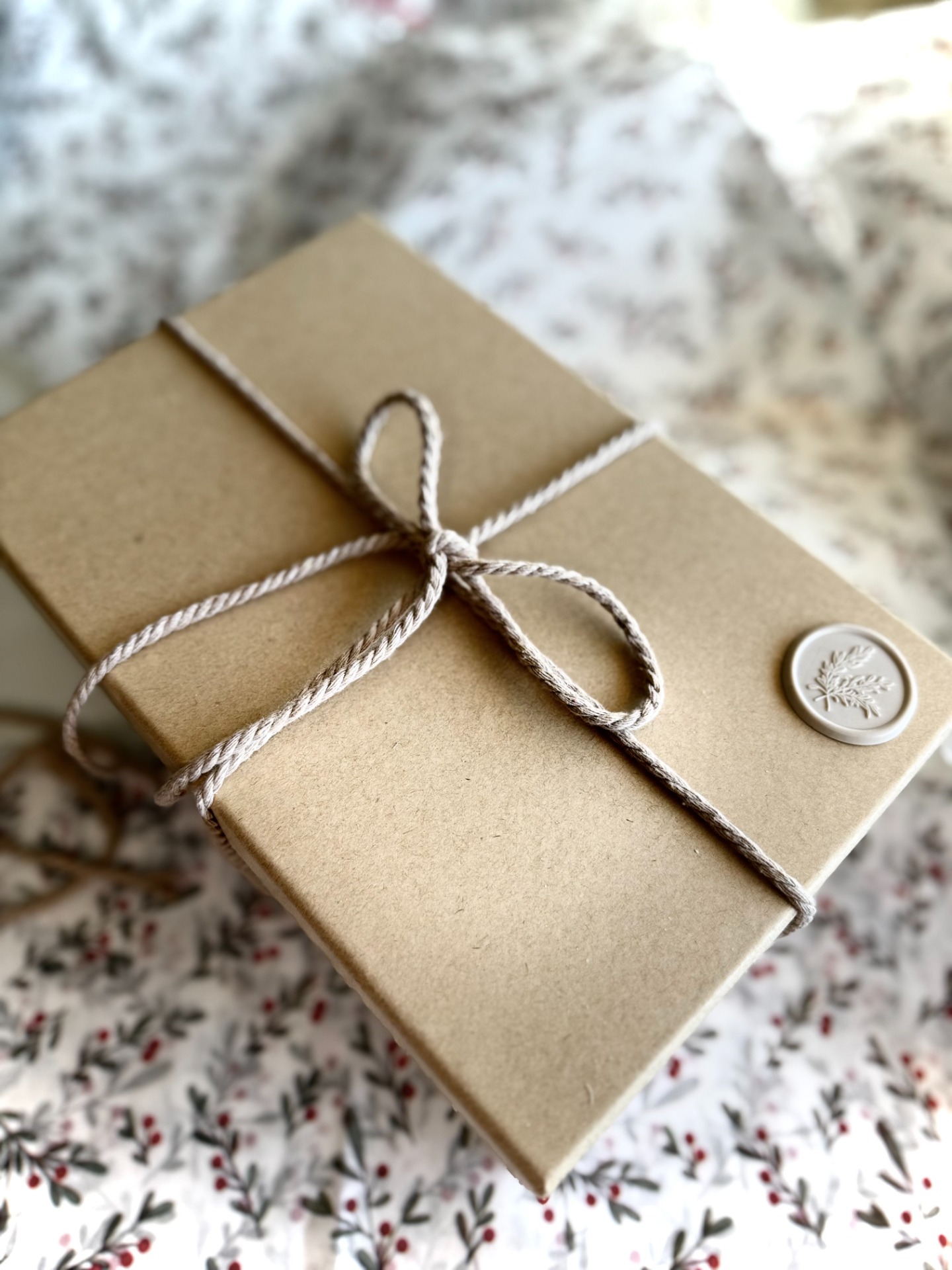 Tato vánoční krabice v kraftovém stylu s jemným papírem, pečetí a stuhou dodá balení přírodní, útulný a slavnostní vzhled a promění rozbalování dárku v radostný zážitek.