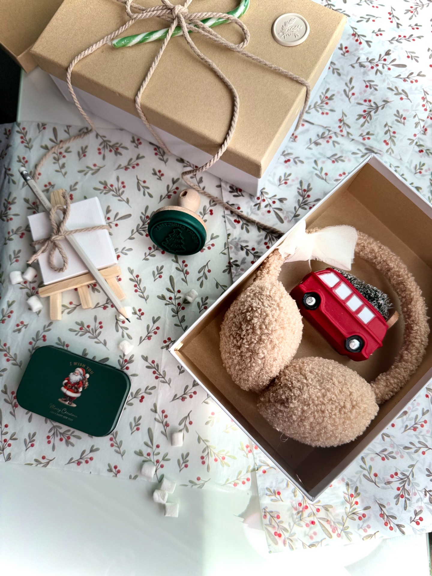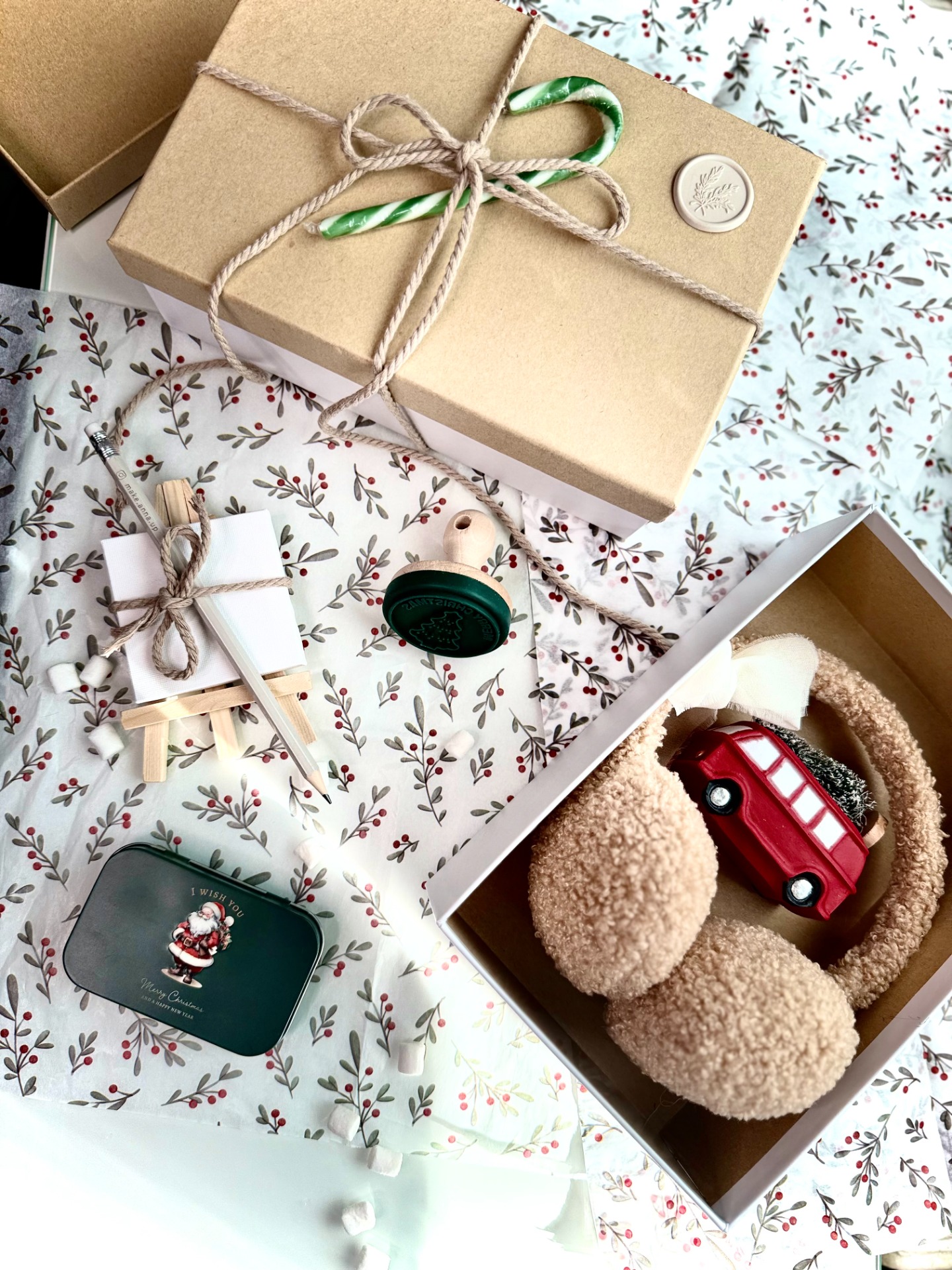 Tato vánoční krabice v kraftovém stylu s jemným papírem, pečetí a stuhou dodá balení přírodní, útulný a slavnostní vzhled a promění rozbalování dárku v radostný zážitek. (Santovo lízátko zdarma)