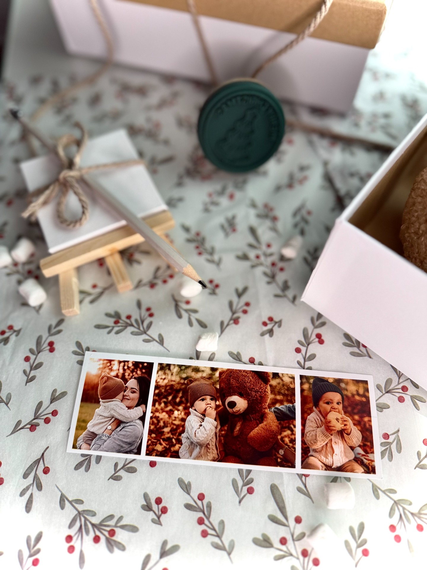 Po potvrzení objednávky mi můžete zaslat jednu nebo i více fotografií, které chcete mít součástí balíčku. Buď zašlete jednu hlavní fotografii, nebo z více snímků vytvořím záložku do knížky, čímž udělám zážitek z rozbalování ještě osobnější a jedinečný. ,